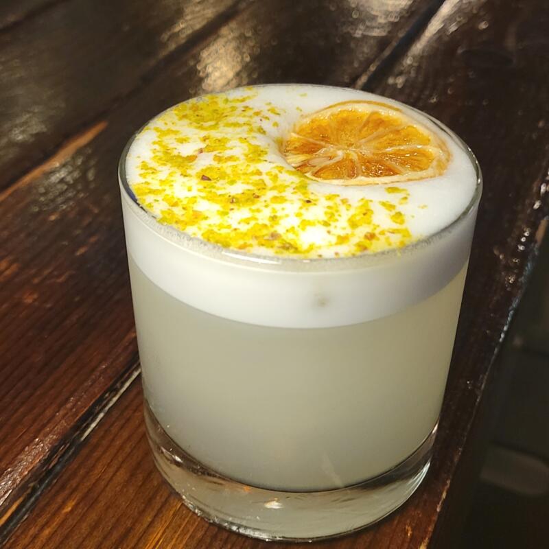 Tullamore D.E.W Irish Whiskey, lemon, pistachio, vegan friendly Fee Foam by Fee Bros. A sour with Irish soul and a soft, creamy finish.